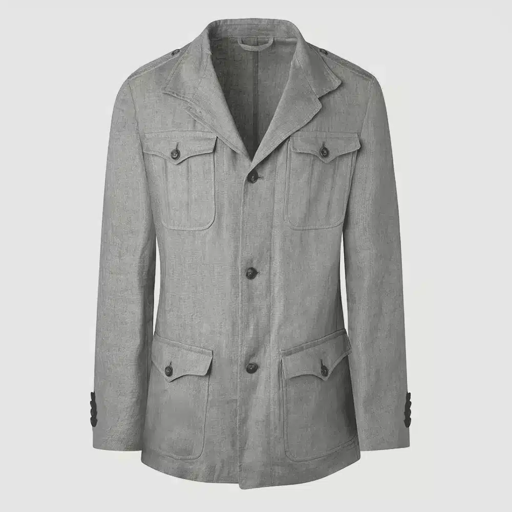 Effortless sophistication meets warm-weather utility. The Linen Safari Jacket is designed for the modern gentleman who moves between leisure and refinement with ease. Lightweight, breathable, and structured with purpose, this piece brings a tailored approach to casual dressing—perfect for spring and summer layering. Whether styled over a crisp shirt or worn relaxed on its own, this garment delivers understated confidence with every wear.